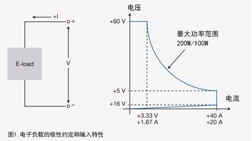 絕大部分電子負(fù)載都指定了它們可以吸收的最大功率水平,如圖1中的最大功率等值線所示。用戶只能在受最大功率等值線限制的電壓和電流組合內(nèi)操作負(fù)載。比如,操作員不可能從48V測試設(shè)備中吸收20A。電壓和電流都在各自的范圍內(nèi),而吸收功率(960W)則超出了200W的負(fù)載最大功耗限制。